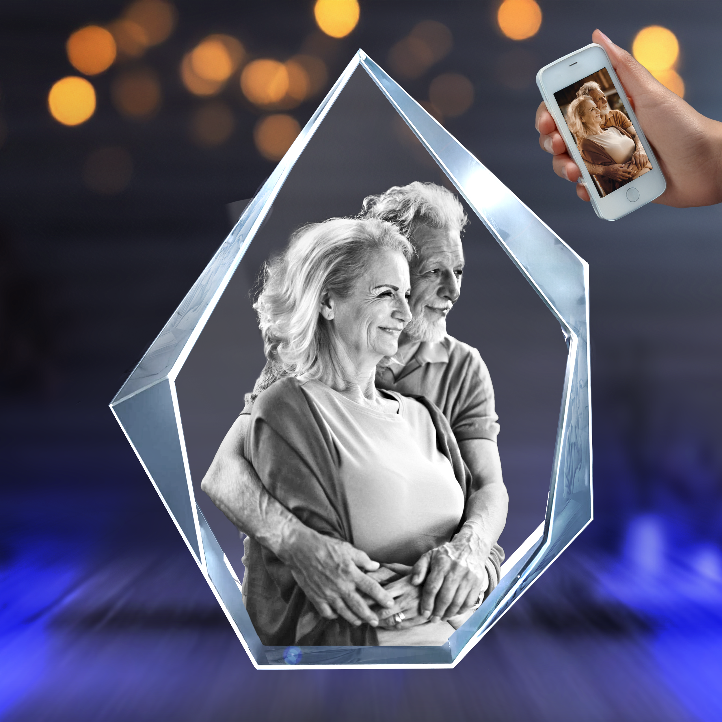 Now you can impress your loved one with 3D glass picture prestige. The Premium 3D crystal prestige memorials is personalized with your loved one’s unique photo engraved with a special laser machine. The crystal picture cube is the ultimate unique and personalized for him or her, boyfriend and girlfriend, capturing your best moments, birthday, anniversaries, award events, graduations, Mother’s Day, weddings, or other special occasions.