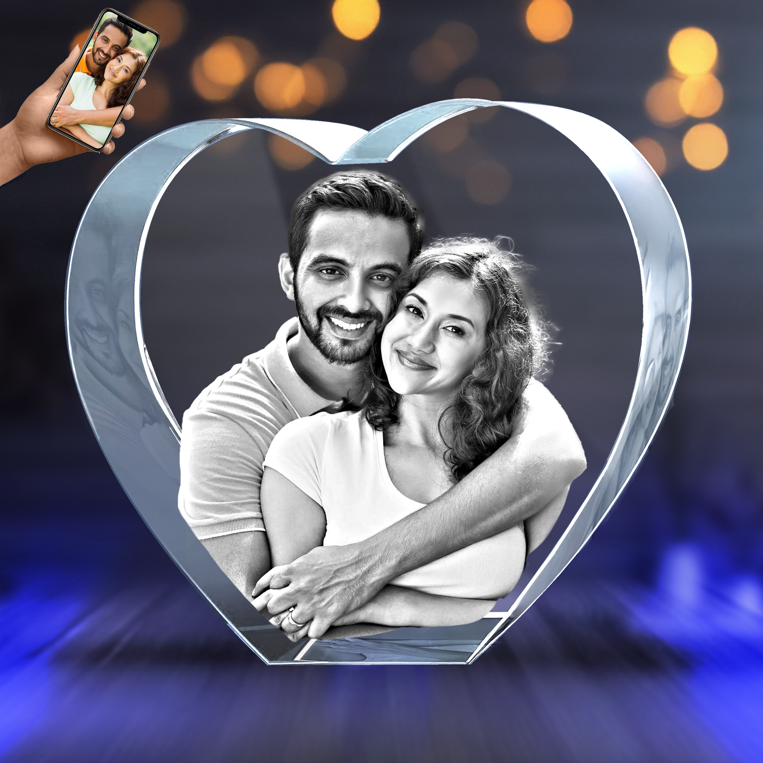 You can upload the favorite picture of your loved ones and give them a special and unique gift. All the products available at 3D Laser Land make your gift special. Convert your pictures to 3D and place the image inside the Heart-shaped crystal. This would become your most personalized possession forever and add a special touch to your keepsakes and gifts.